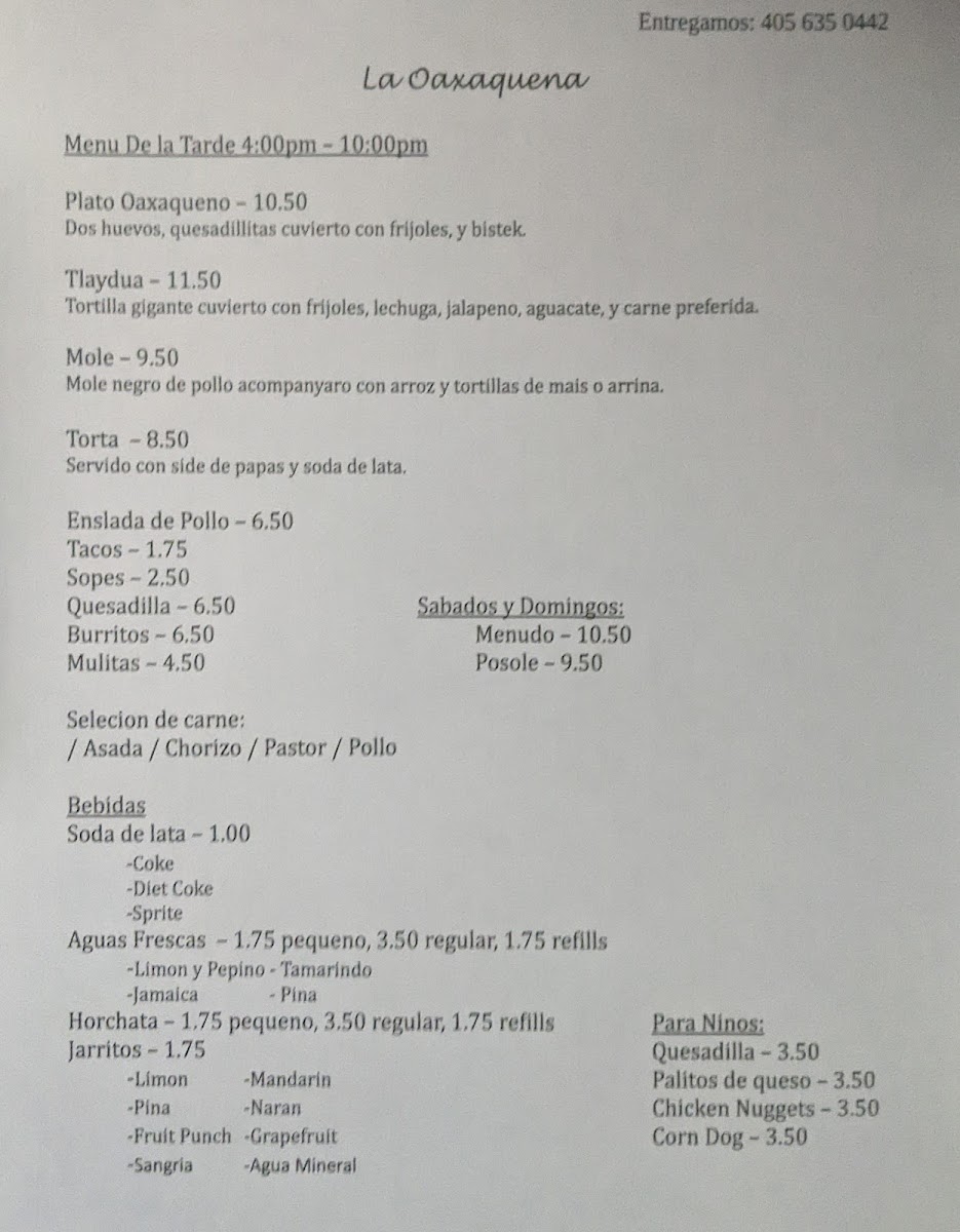 La Oaxaquena Bakery Menu